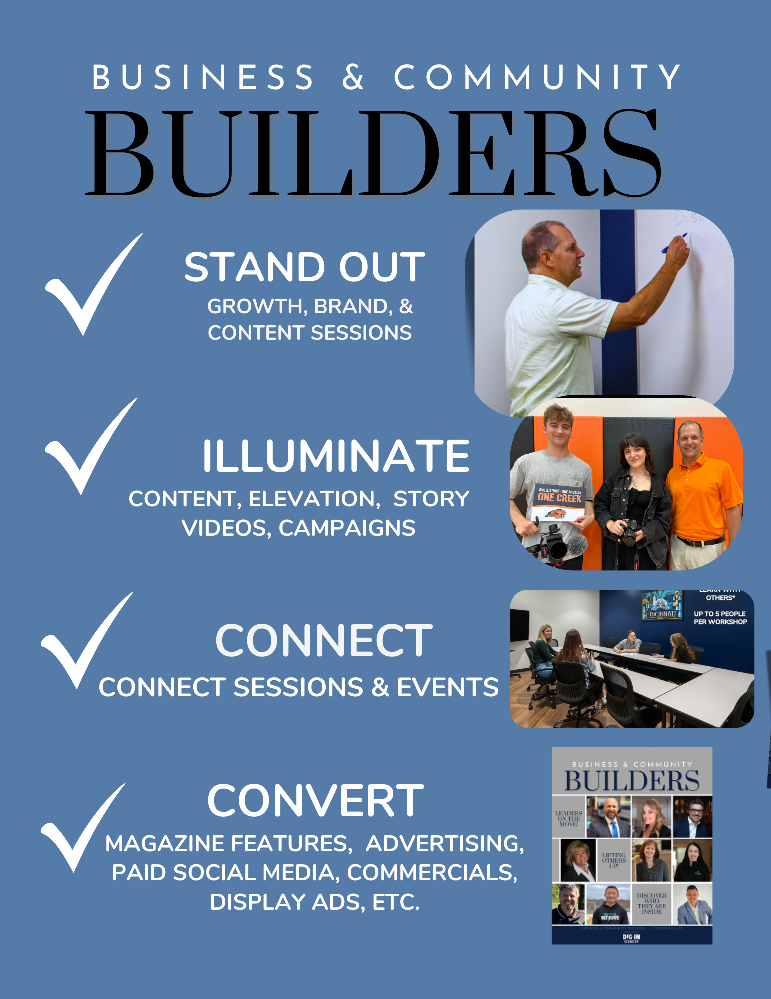 Our Mission is to BUILD up brands, businesses, and communities to the next level, CELEBRATE leaders on the move, and EMPOWER regional economic development!